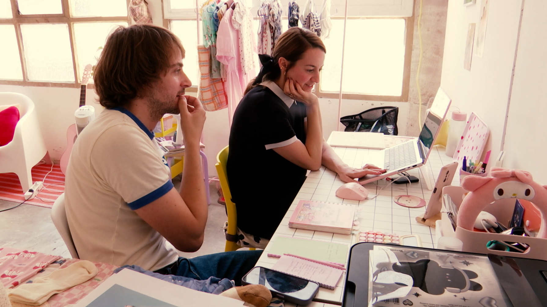 Victor Von Schwarz, que hi aporta l’experiència de dotze anys en el món de la moda, destaca el valor del treball compartit: “El xulo és que ara no estic sol, hi ha un fotògraf, puc demanar ajuda, resoldre dubtes… Ens preguntem coses tota l’estona”. La seva marca, marcada per l’estètica femenina, el color rosa i el tul, s’integra en aquest ecosistema multidisciplinari que li permet ampliar processos i col·laboracions.