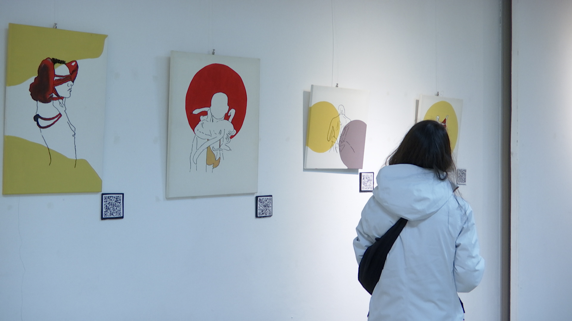 Les pintures i dibuixos de Carmona combinen el blanc i negre, per a comunicar sense distraccions, amb el color per a expressar emocions. A més, a cada obra li acompanya un QR amb cançons d’artistes variats com Rosalía, Residente, Valeria Castro o el grup Tanxugueiras.