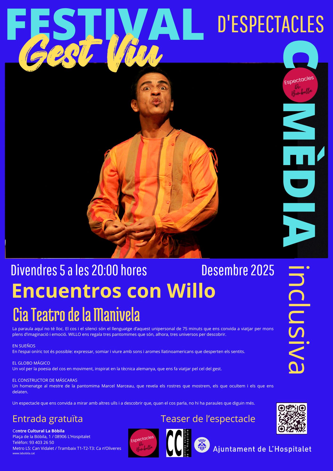 L’actor William Arunategui és el proper protagonista del cicle de teatre gestual inclusiu Gestviu. De la mà de la companyia de teatre La Manivela presenta el muntatge ‘Encuentros con Willo’, el divendres 5 de desembre a les 20 hores al Centre Cultural Santa La Bòbila. L’entrada és gratuïta.