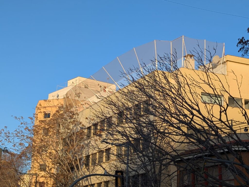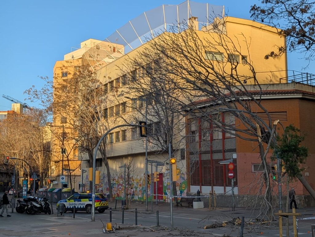 En aquests moment el bombers estan actuant al pati superior de l'institut Santa Eulàlia per retirar la tanca perimetral. El vent havia malmès aquesta tanca i corria perill de caura al carrer. Des de fa hores, l'avinguda Carrilet entre Pareto i Anselm Clavé roman tancada pel perill que provocava la tanca.