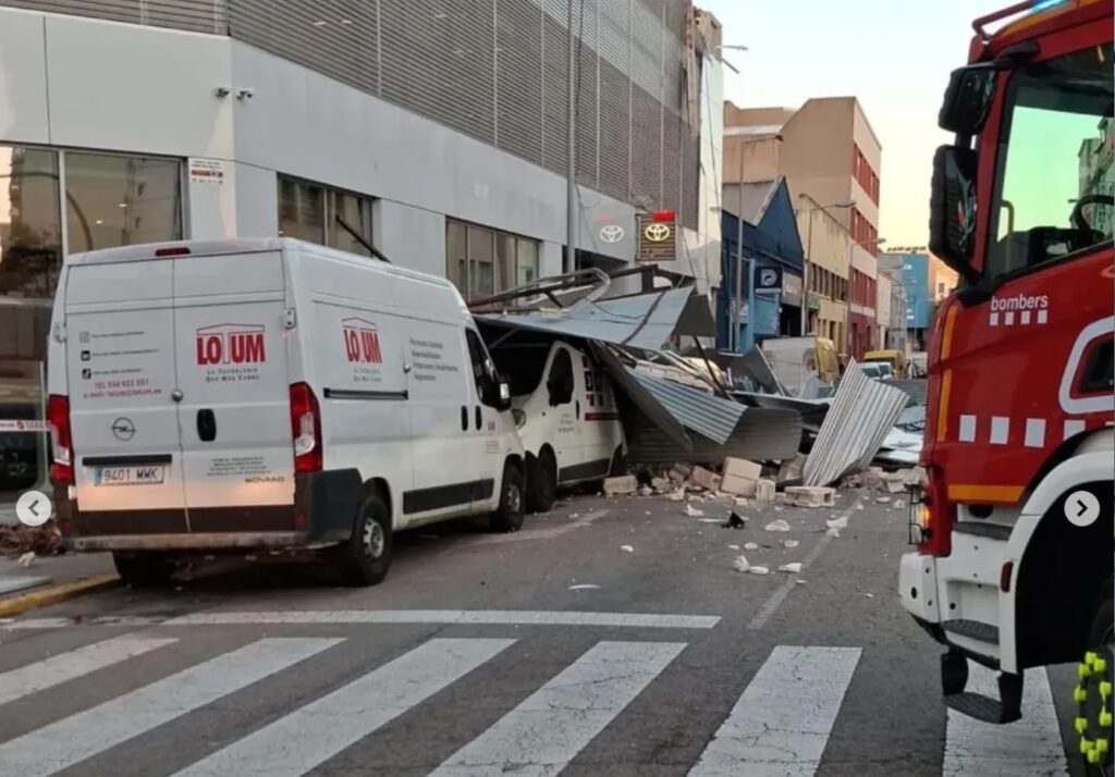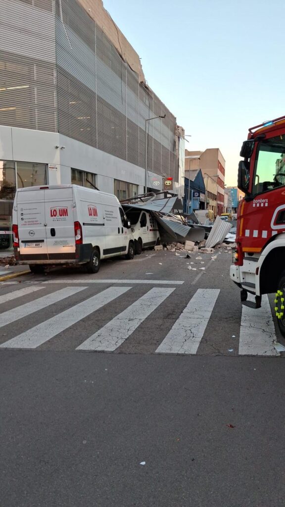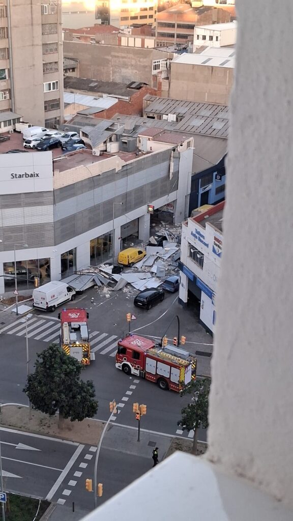 Una dona ha resultat ferida lleu a la Travessia Industrial, on ha caigut una part de l’estructura de l’edifici Toyota. El mur ha caigut sobre la part posterior del seu automòbil quan es dirigia al taller. Aquest és l’incident més greu registrat a L’Hospitalet. (veure imatges al time line).
