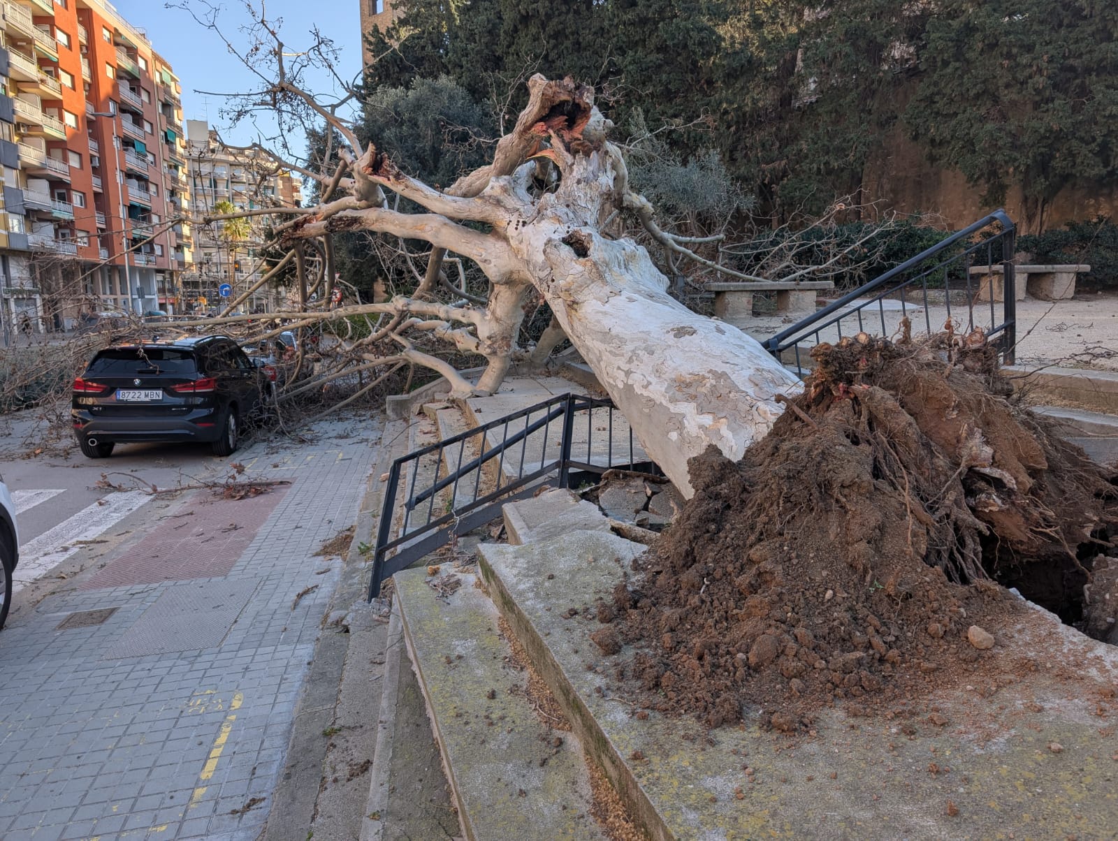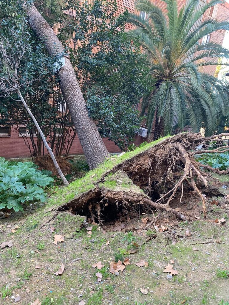 04.27h Hospital Bellvitge - Caiguda d'arbre al lateral de la porta principal (zona interior)