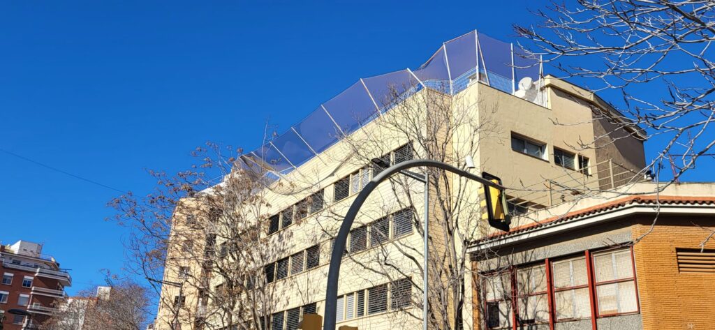 06.09h Crt Mig / Fabregada - Sostre de metacrilat (4 metres) ha sortit volant, ara mateix està parat entre contenidors