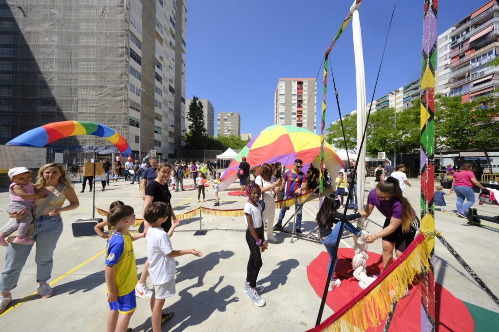Jornada de retrobaments al pati de l’escola La Marina, al barri de Bellvitge. Dissabte, 17 de maig, el centre ha celebrat els seus 50 anys d’història amb una gran festa plena d’activitats i tallers per a grans i petits.