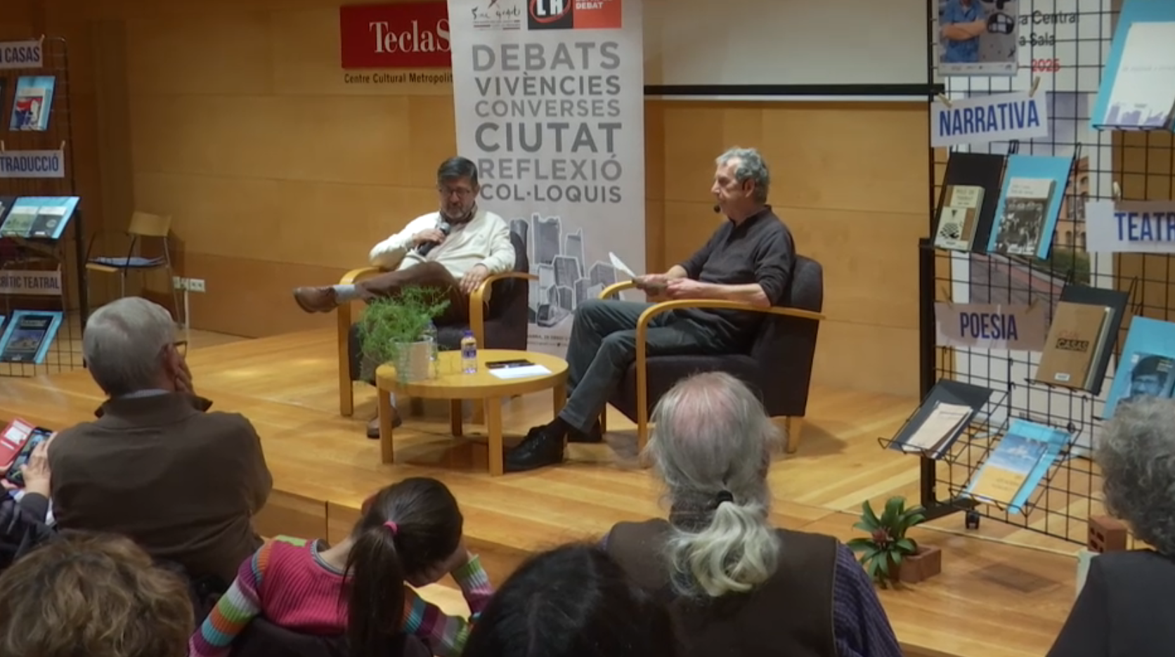 Amb retranca, l’autor ha confessat que té “tendència a estar passat de moda i descatalogat” per recordar que no presentava cap novetat editorial. “L’última novetat que vaig presentar aquí al Tecla Sala, en un acte amb dos espectadors,i un era una cosina del meu pare, va ser un dietari i un volum amb tot el meu teatre”, ha explicat.