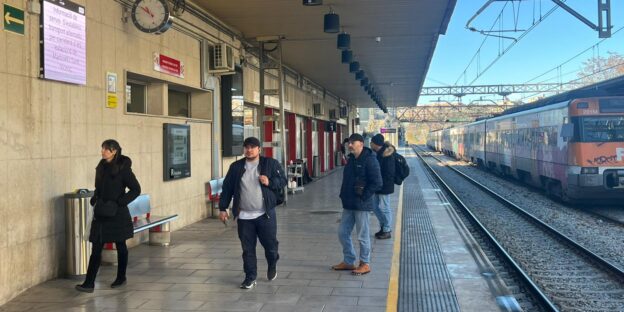 Matí complicat a l’estació de L’Hospitalet en la primera jornada amb servei de Rodalies. Els usuaris que s’han apropat a l’estació, molts menys de l’habitual, han patit retards de més de mitja hora tant a la línia R1 com a l’R4: