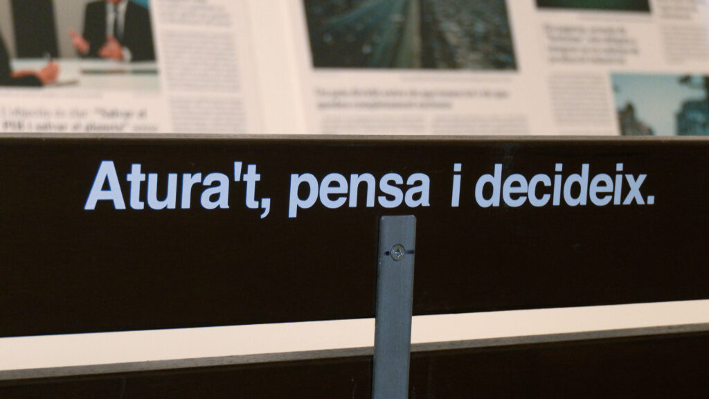 L’exposició conclou imaginant diferents escenaris de futur a través de notícies de diaris inventades, amb titulars tan dispars com “Ciutats fortalesa i camps militaritzats”, “Acord climàtic històric” o “El pla d’habitatge cooperatiu erradica l’especulació”.