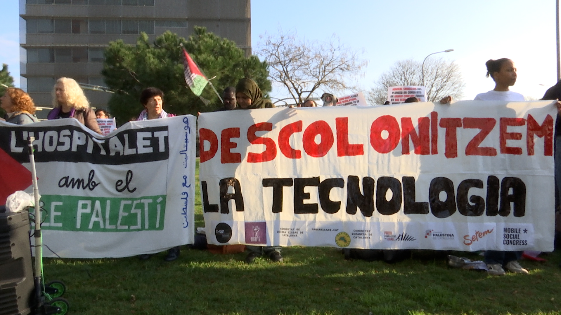 Una cinquantena de persones s’han concentrat a les portes del Mobile World Congress, contra la presència d’empreses de països que, segons els manifestants, vulneren els drets humans. Diverses entitats participants han denunciat els genocidis vinculats al model tecnològic global.