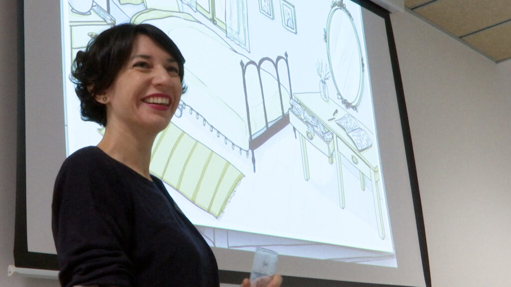 Elisabeth Justícia és autora de la sèrie gràfica ‘Dominga habla sola’ i al casal Ermita ha explicat el cas de la senyora Prisilla, a qui ningú no troba ni a casa seva ni a cap altre lloc del barri, ja sigui la farmàcia, el supermercat o el parc. A partir d’aquí s’ha obert un joc de detectius per treure’n l’entrellat.