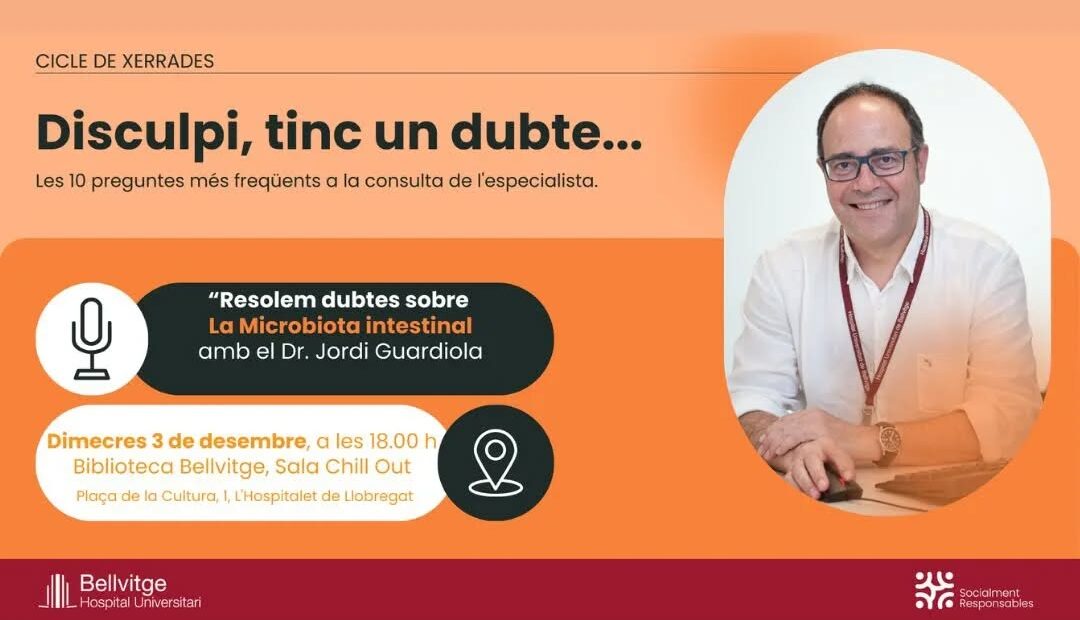 La Biblioteca de Bellvitge acull el dimecres 3 de novembre a les 18 h, una nova sessió del cicle de xerrades mensuals ‘Disculpi, tinc un dubte’, organitzat amb l’Hospital de Bellvitge. En aquesta ocasió, el cap del Servei d’Aparell Digestiu del centre, el doctor Jordi Guardiola, respondrà les deu preguntes més freqüents que arriben a la consulta sobre la microbiota intestinal. L’activitat es durà a terme a la sala Chill Out de la biblioteca.