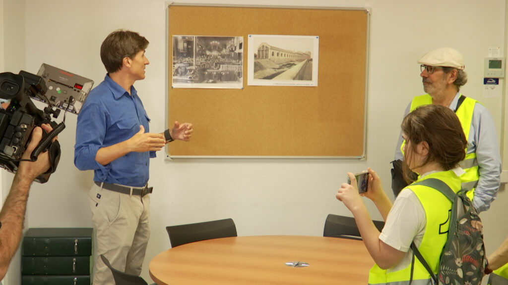 Durant la visita, els afortunats que s’han fet amb entrades han pogut accedir al recinte d’oficines, on s’ha procedit a l’explicació prèvia de trepitjar el taller.